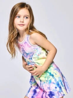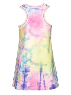 Get her set for summer with this colorful tie-dye dress. A star print surrounded by rhinestones adds a pop of sparkle girls love. Sporty striped trim and an easy A-line shape make it a definite wardrobe winner.