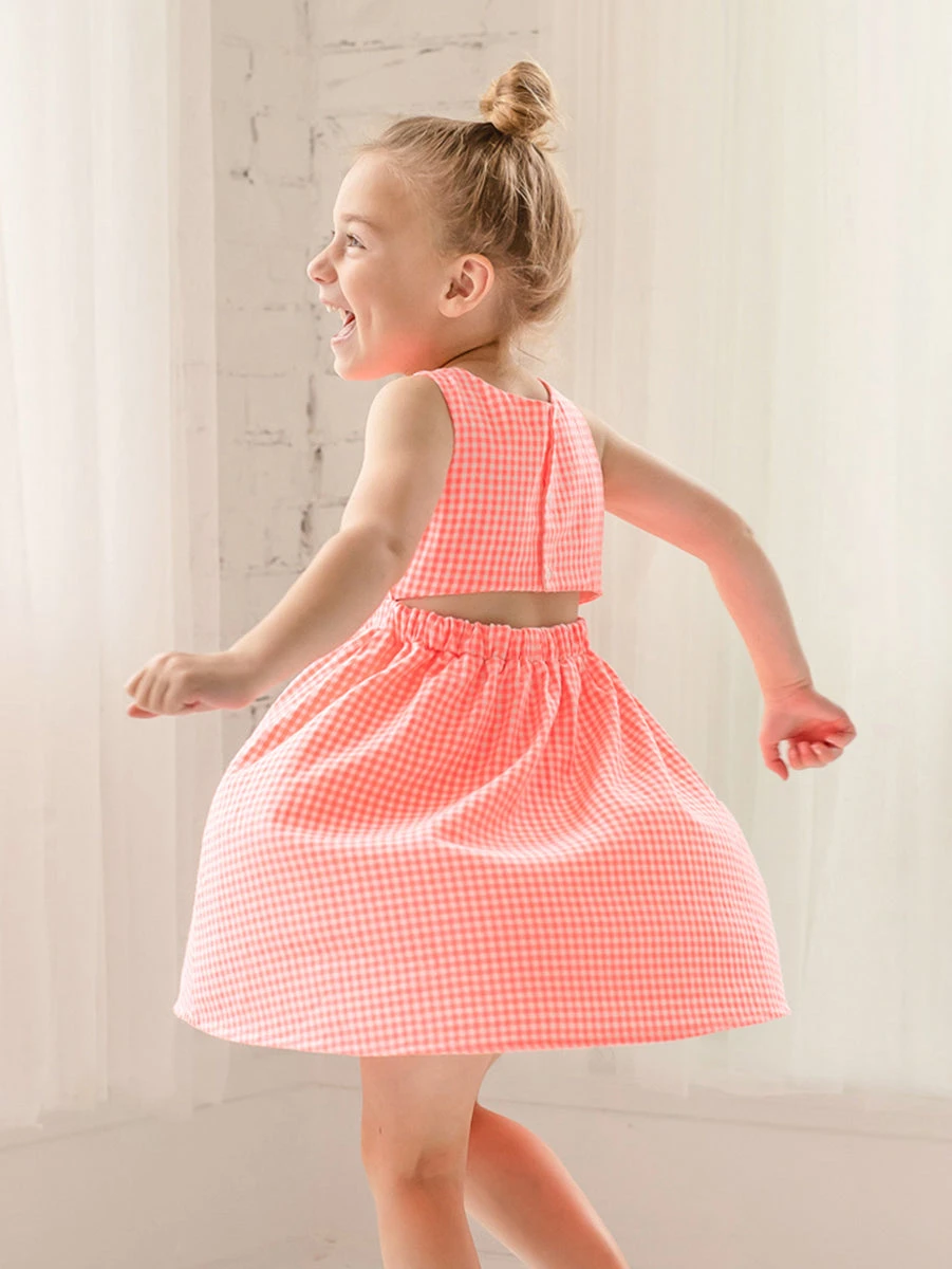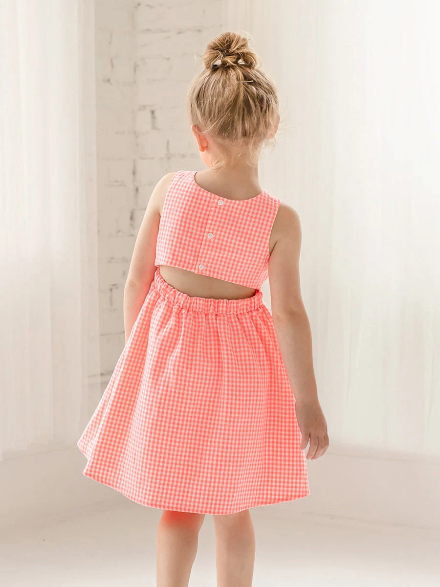 Brighten up spring days with this sunny dress. The mini-checked print in a luscious color feels soft, looks modern and fresh. With buttons in back and a cut-out detail, she’ll want to wear it time and again.