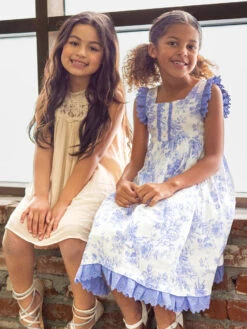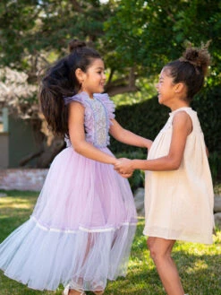 Your mini will love this graceful, carefree dress. The free-flowing silhouette is defined by a pretty lace panel, gentle gathers and eye-catching back buttons. Get the matching mom dress so you and your mini can dress alike and create memories to cherish!