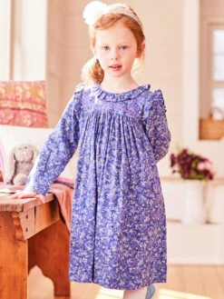 Blooming with soft blue flowers, this lovely dress is sure to be one of her favorites. With an easy fit (hello, twirling!), ruffle accents, and (look closely) delicate floral embroidery, how can it not be? Great for school, everyday play, and outings with her grandparents.