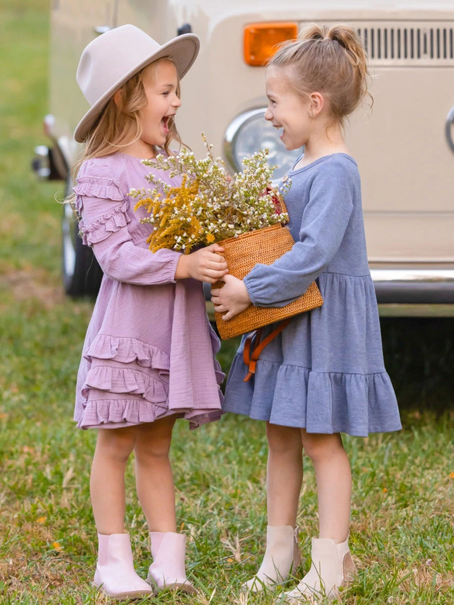 Easy dresses like this appeal to both girls and moms β because itβs great for play, school, and running around on the weekends. Features a soft knit and gently fitting silhouette, with a trio of buttons down the front. As the fall weather cools, it pairs nicely with tights and boots.Β