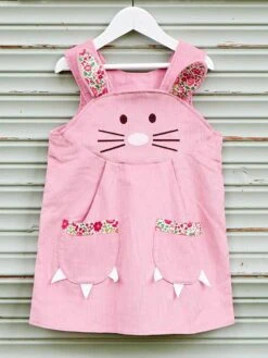 Made with super-soft dusky pink corduroy and Liberty of London print fabric. This very special little dress is sure to be a favourite piece, making dressing really easy. Perfect for Easter egg hunts, birthday parties and beyond. Encourages role play. Bunny Ears headband sold separately.
