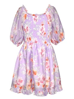 Fresh for spring, a floral print dress in the loveliest colors. You’ll appreciate how versatile and easy it is, she’ll love how pretty and comfortable it is! Designed with a smocked bodice, peasant-style sleeves and ruffle trim, it’s certain to be a favorite.