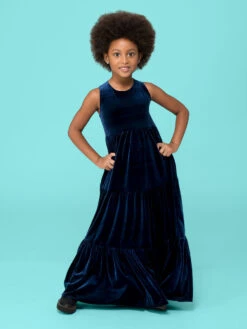 Itβs party season, and this shimmery velour dress with deep blue hue is sure to stand out. Styled with a round neckline and tiered skirt, the easy-all-over style is a dreamy choice for any invitation. Best of all, she gets to match mommy!