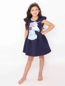 Classic glen plaid gets a fun update here. The dropwaist silhouette features long sleeves with bell cuffs and bows, an exposed back zipper, and is topped with leopard-print faux fur bow appliqués on the bodice. Super-cute!