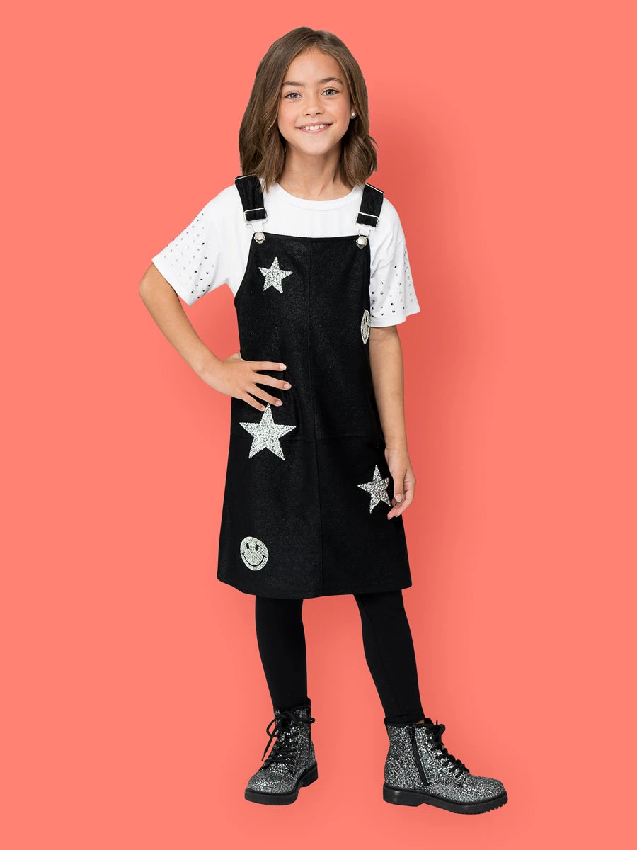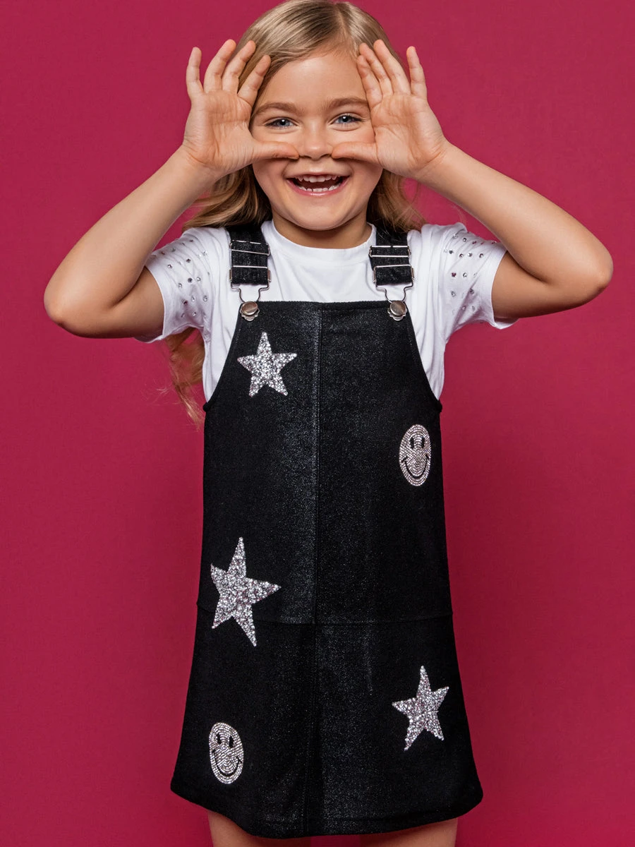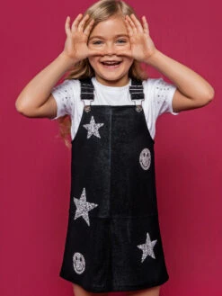 She’ll love rocking these super-cute overalls all season long. Glittery stars and smiley faces add a fun finish. Â