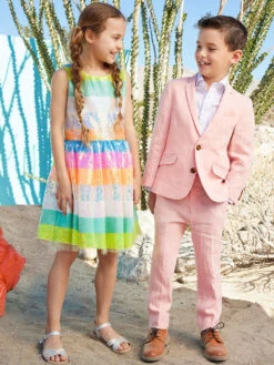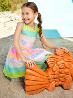 Luscious sorbet colors encircle this springtime dress. All-over sequins add sparkle — your girl will shine everywhere she goes! A beautiful dress for Easter, parties and all things spring.