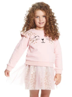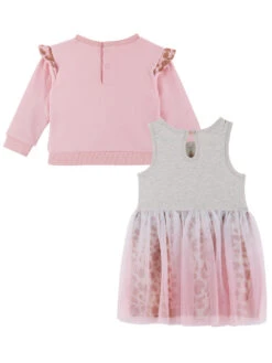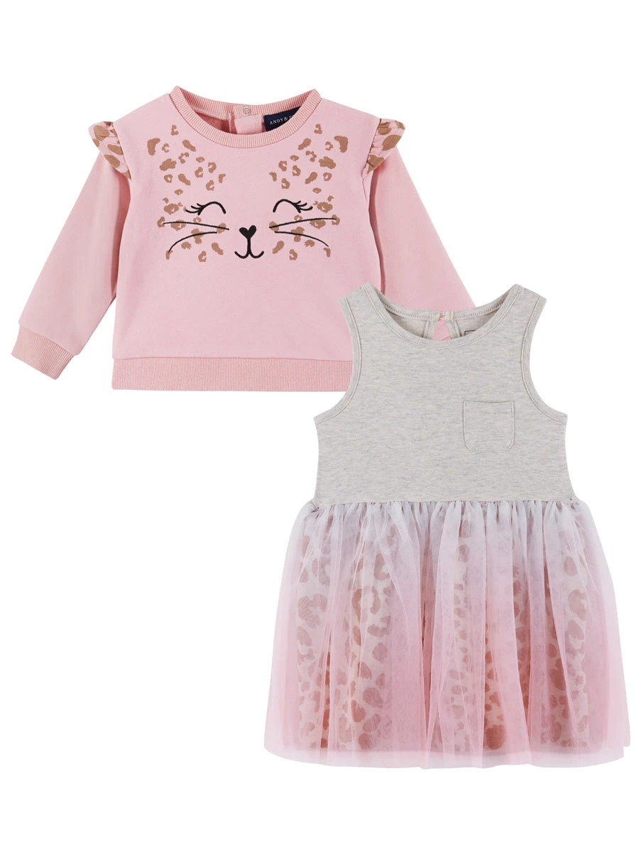 She’ll love her cute leopard outfit! Perfect for those transition days and beyond, this features a knit dress with leopard-print skirt and tulle overlay. The coordinating sweatshirt-knit top layers over it. Ruffles at the shoulders and an adorable print are sure to please.