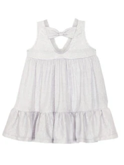 Your little pixie will look like a princess in this shimmery dress. An empire waist, full skirt with ruffle (expect to see lots of twirls!), and back cut-out with bow accent make it perfect for any spring or summer celebration.
