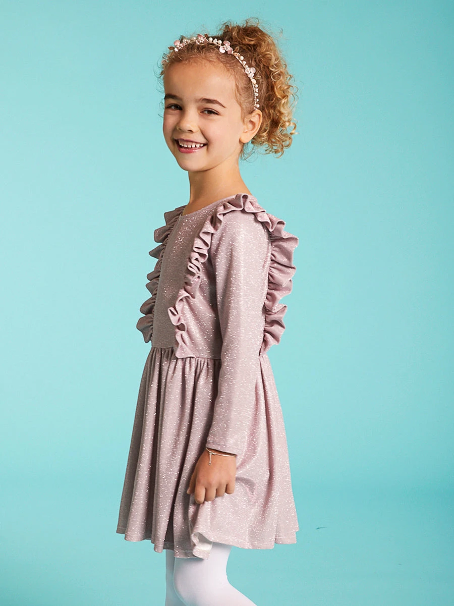 Shimmer, twirl and shine in this beautiful pink frilly dress. A perfect party dress for girls who love a bit of glitter, she won’t want to take it off, even when the party has ended.