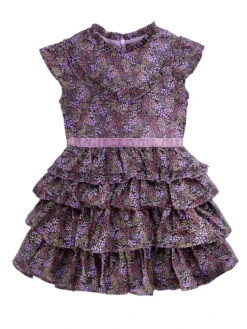 A fresh floral print and charming style create a perfect-for-spring dress. It’s dressed up with a tiered ruffle skirt for extra flounce, and sweet ruffle trim. A velvet ribbon defines the waist. You’ll find it’s ideal for all kinds of occasions…or no special occasion at all!