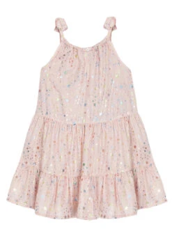 A shower of shiny stars makes this dress extra special. Lightweight chiffon and the easy-all-over silhouette make it one of the most comfortable you could possibly find. A gathered neckline and bow on each shoulder add to its charm. It’s both party perfect and everyday easy, so she’ll get lots of wear out of it.