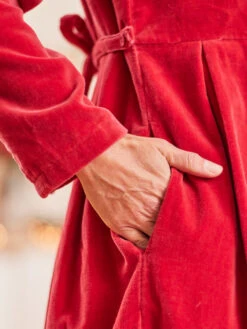 Effortless elegance is yours with this luxurious red velvet dress. Look for tonal embroidery on the bodice, pleats at the waist, and a gracefully draping skirt. Dress your daughter in the matching style, for picture-perfect holiday memories!